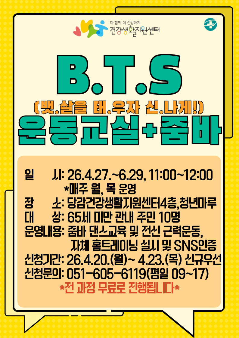*당감건강생활지원센터 "B.T.S(뱃살을 태우자 신나게)운동교실" 운영*