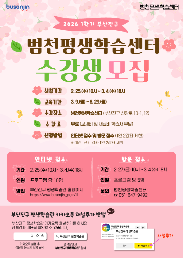 2026년 상반기 범천평생학습센터 수강생을 모집합니다