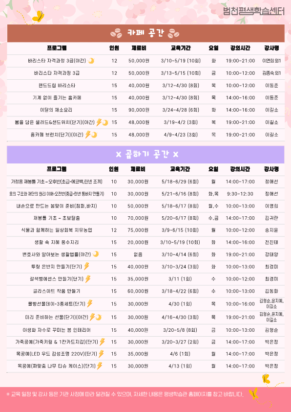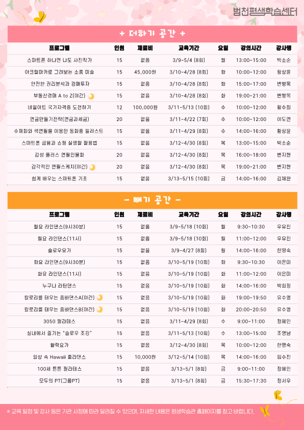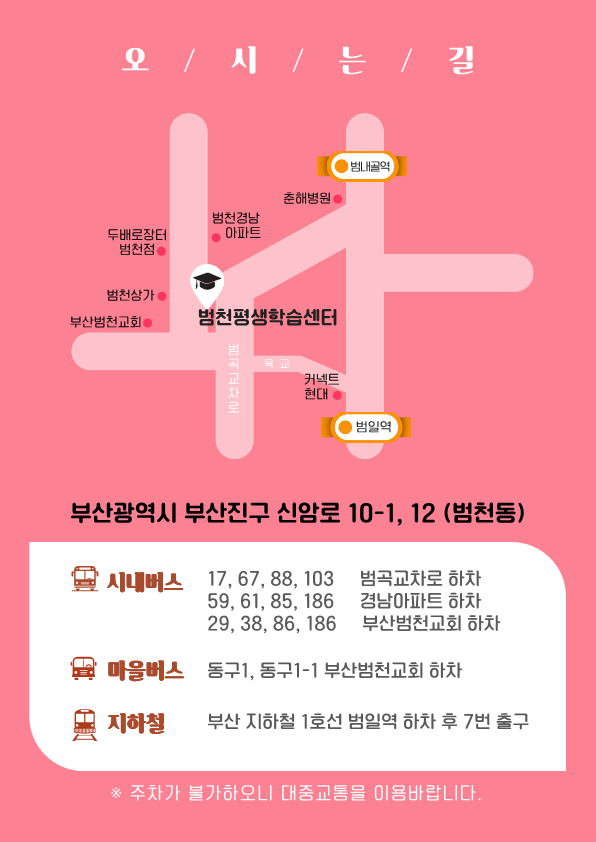 - 장 소 : 범천평생학습센터 내 4개 강의실