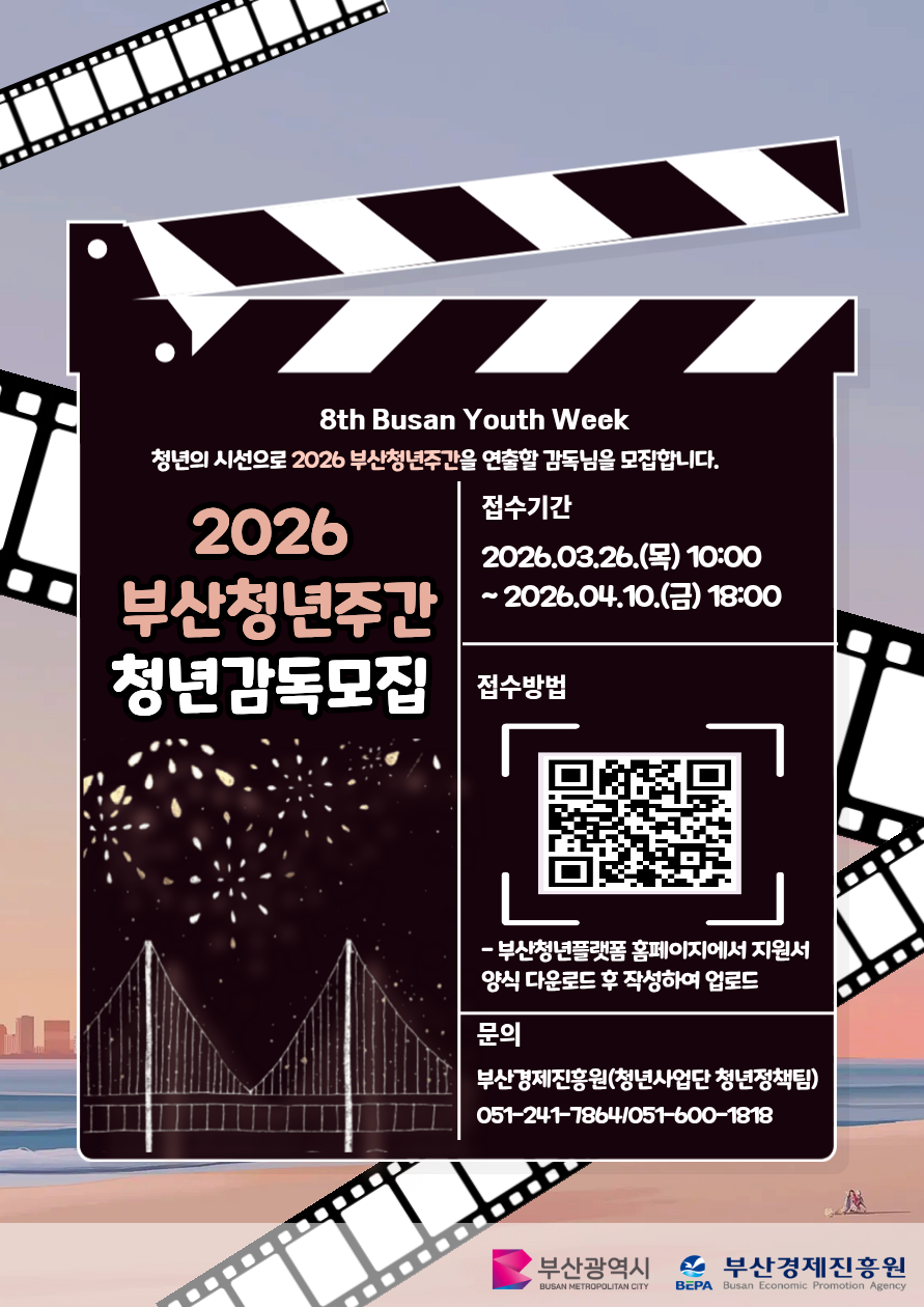 부산광역시에서는 청년들의 참여와 교류를 통해 청년이 즐기고 연결되는 청년축제 「2026 부산청년주간」 운영을 위해 청년이 직접 기획·주도하는 청년감독제를 운영하고 있습니다.