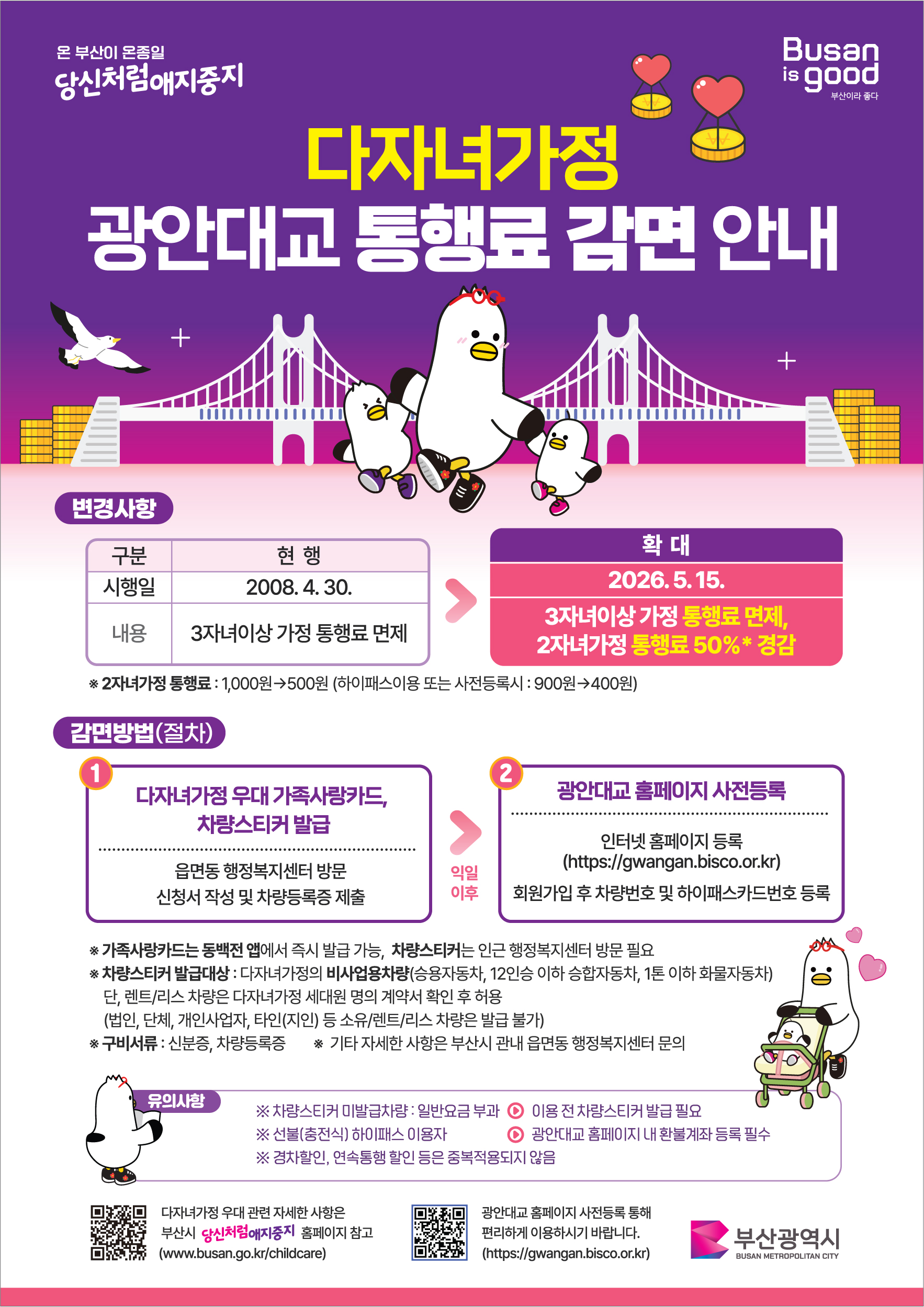 「 다자녀가정 광안대교 통행료 감면 안내 」