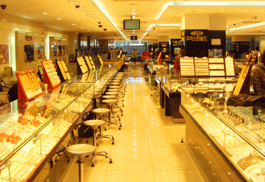 貴金属商店街が密集している「ゴールドテーマ通り」。凡川洞に位置しているこの貴金属商店街通りは、釜山を代表する貴金属商店街でもある。
