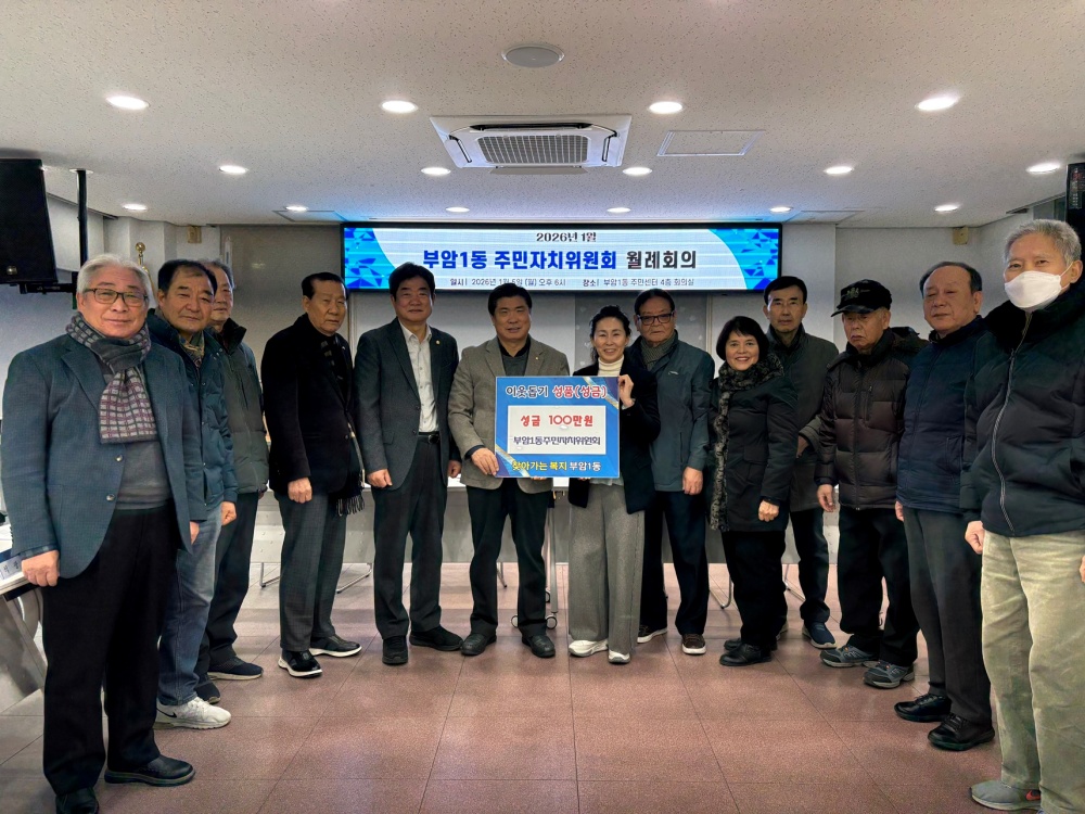 부암1동 주민자치위원회(위원장 박수용)는 1월 5일, 새해를 맞아 어려운 이웃을 돕기 위한 성금 100만 원을 부암1동 주민센터(동장 노진숙)에 기탁 했다.