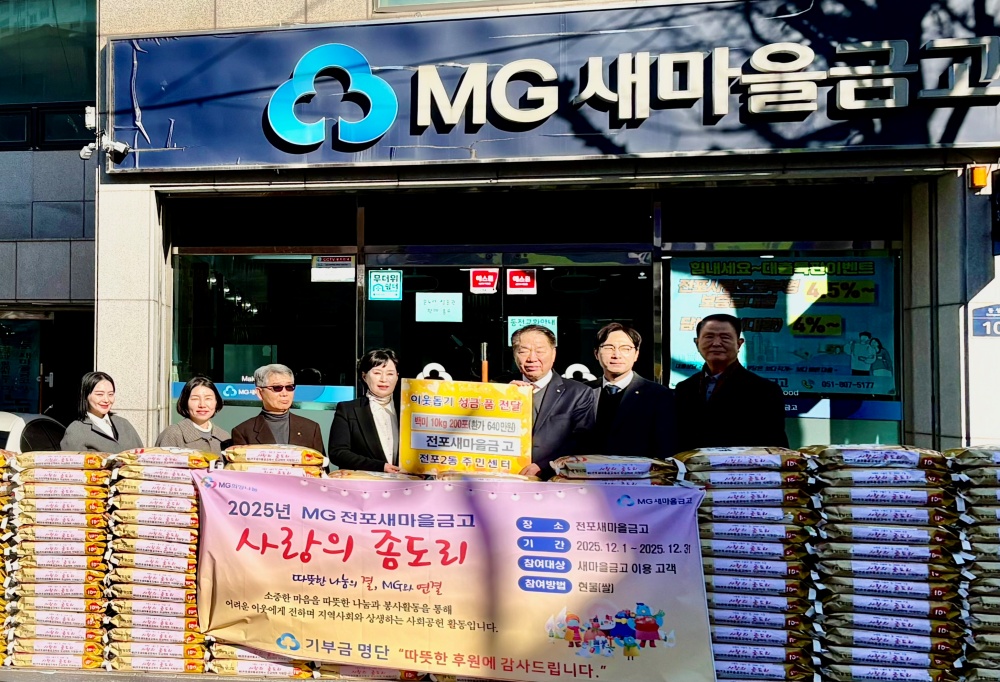 전포새마을금고(이사장 정기화)는 1월 6일 사랑의 좀도리 운동'으로 마련한 쌀 200포(환가액 640만 원)를 전포2동 주민센터(동장 신미선)에 기탁 했다.