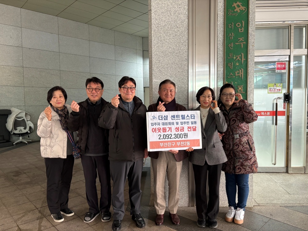 부전2동 더샵 센트럴스타 입주자 대표회의(대표 김지웅)는 1월 8일 부산진구 부전2동 주민센터(동장 이부영)에 어려운 이웃들을 위한 성금 209만2,300원을 기탁 했다.