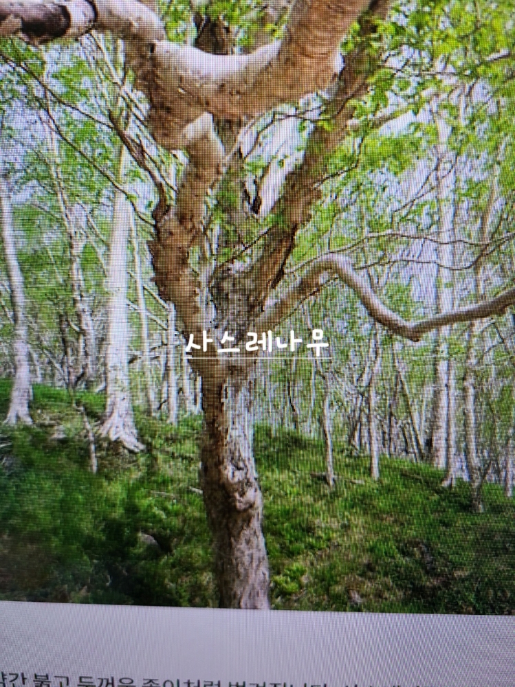 다음은 사스래나무다. 자작나무과의 갈잎 큰 키의 낙엽교목이다. 높이는 7∼8m에 이른다. 껍질은 회적갈색으로 얇게 벗겨진다. 자작나무, 사스래나무, 거제수나무는 흰색 계통의 수피와 비슷비슷한 잎 모양으로 인해 구분이 쉽지 않다. 사스래나무는 우리나라 고산지대의 대표적인 나무로 흔히 무리 지어 자란다. 가리왕산 같이 잘 보존된 숲에서는 지름 1m 가까운 거목들도 흔하다. 사스래나무는 고산 환경에 최적화된 독특한 형태를 보여주고 있다. 수피는 어린 나무에서는 적갈색을 띄지만, 성장하면서 회백색으로 변하고 종이처럼 얇게 벗겨진다. 이는 추위와 건조로부터 내부 조직을 보호하는 역할을 한다.