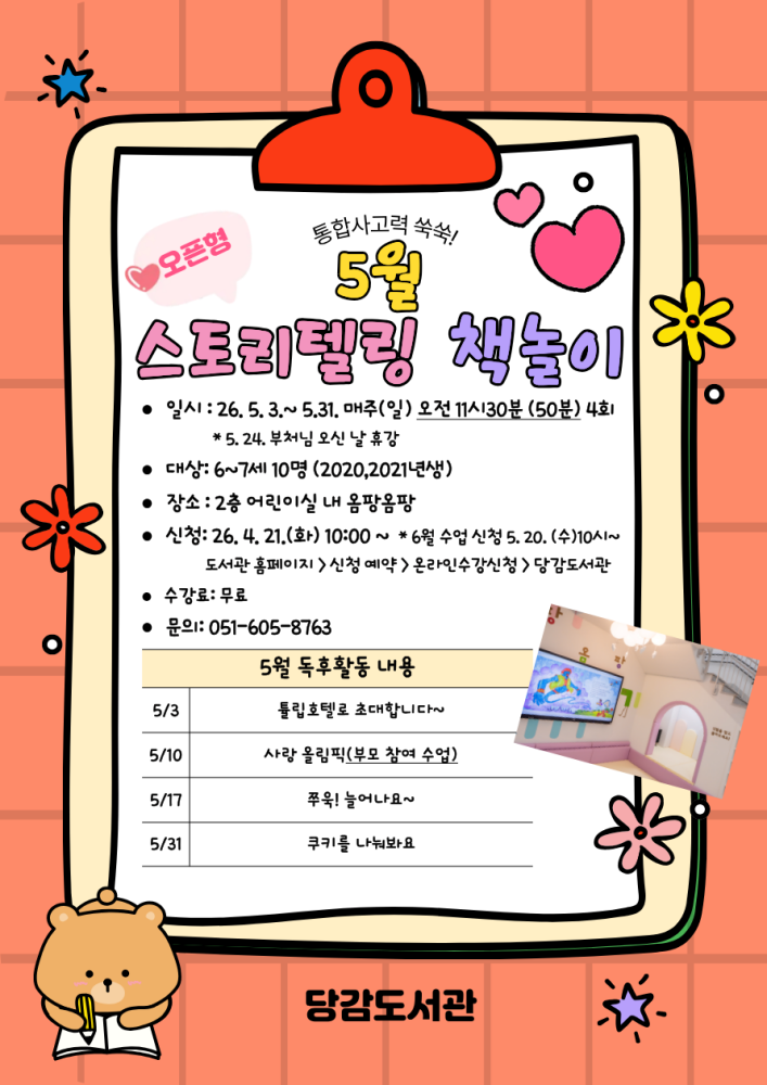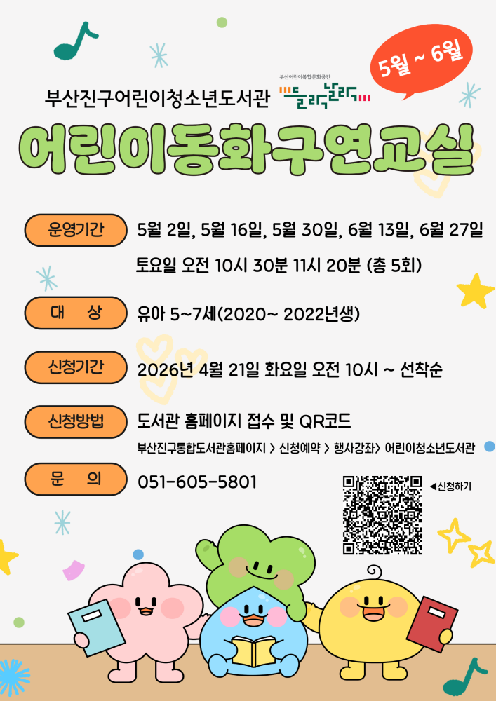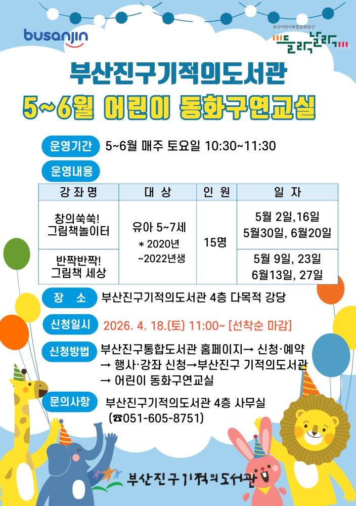 문의:☎051-605-5803(어린이청소년도서관), 8753(기적의도서관), 8763(당감도서관)
