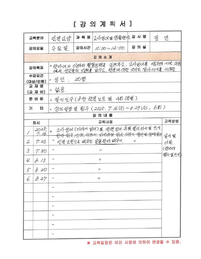 | 11 | 온라인 | 김*순 | **** | 2025-06-25 10:08:42 | 수강확정 |